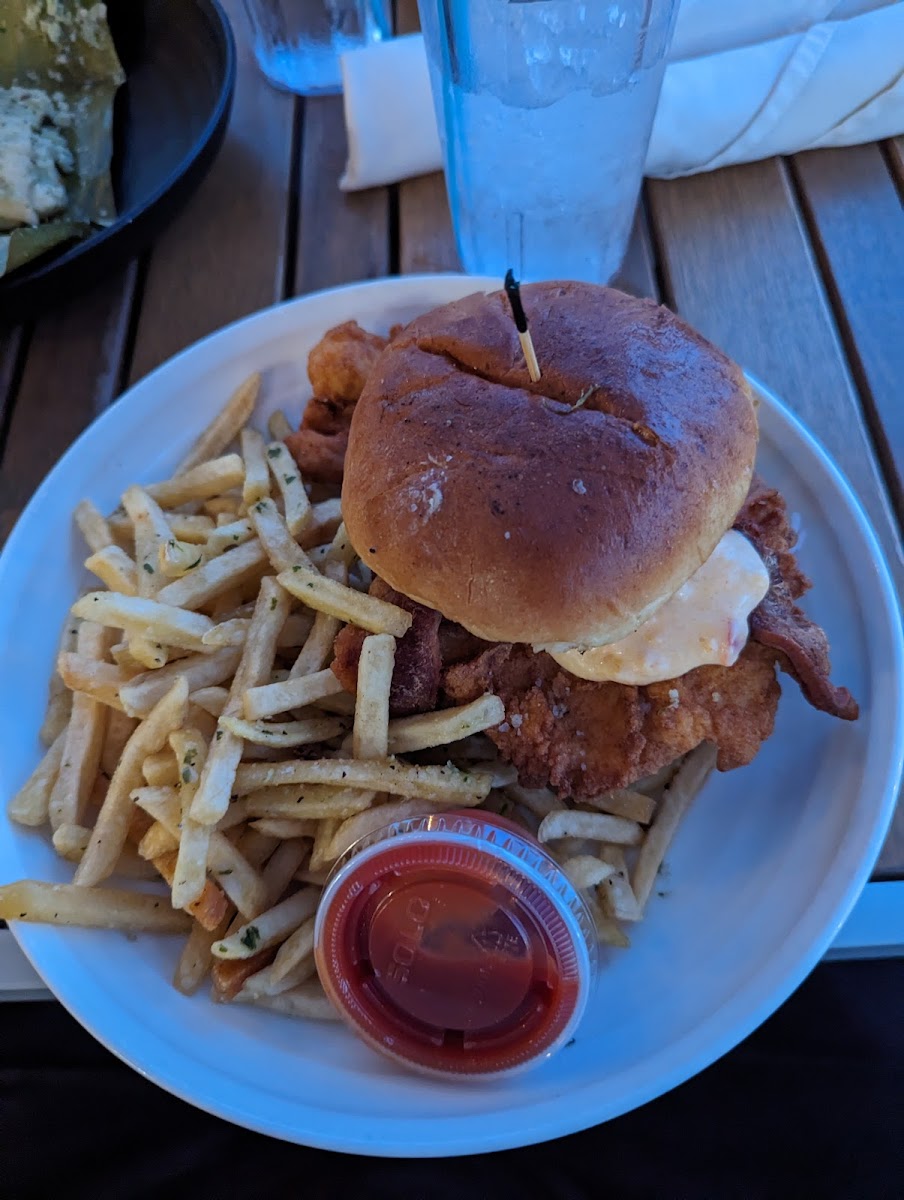 Great place for breakfast. We had the breakfast croissant which was amazing. Mimosas were great too. The staff was very pleasant and present. The atmosphere is great with the patio seating. I would recommend everyone to at least give Fish Tails a shot.